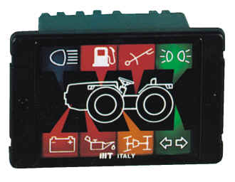 HAZARD - REAR DRIVE ON - WATER TEMPERATURE - TRACTOR'S INCLINATION - 4X4 - SLOW GEAR - HOOK - BEACON | BATTERY - OIL PRESSURE - WATER TEMPERATURE | |||
