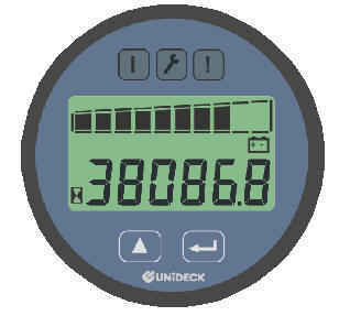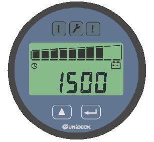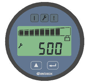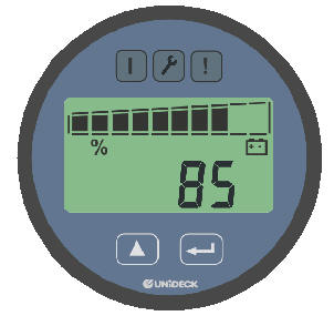 TN - LCD with backlight 10 segment bargraph - Battery state of charge 6 numeric digits Display, supports the following modes: - Truck hour meter - Duty truck hour meter - Next truck service - Battery state of charge [%] - Current Failure |