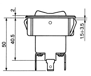 ROCKER SWITCHES CAP BLACK RUBBER - WHITE ICONS COMOULDED HOUSING BLACK POLYVINYL ACETATE SNAP-IN MOUNTING - SPADE 6,35 mm. TERMINALS