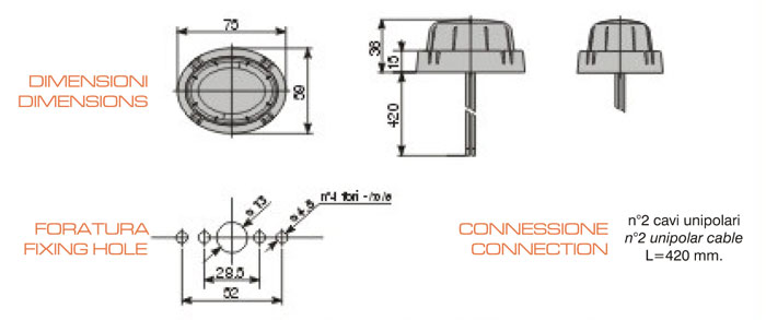 TECHNICAL DATA HOUSING:POLYPROPILENE LENS:POLYCARBONATE HOMOLOGATIOE:ECE SEALING CEI 70-1:I66 INSTALLATION:ORIZZONTALE / VERTICALE LIGHTING: N 4LED |