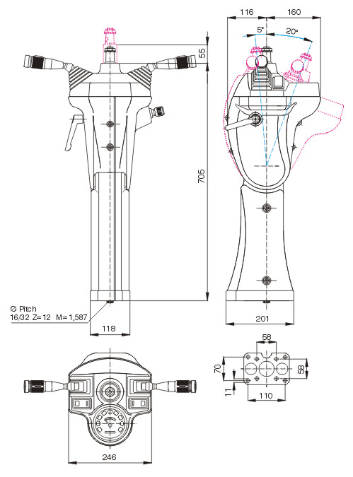 ADJUSTMENT (55 MM) BY THE SAME LEVER USED FOR THE TILT ADJUSTMENT